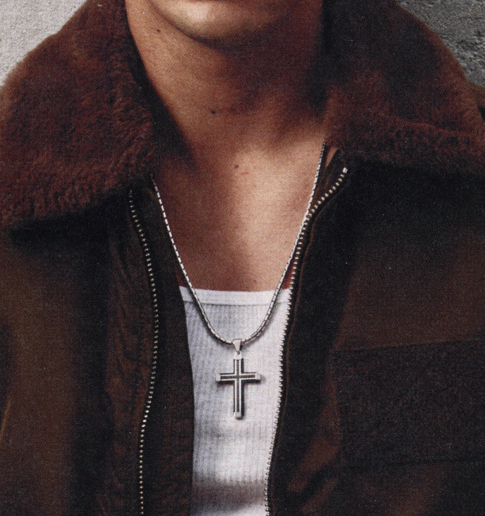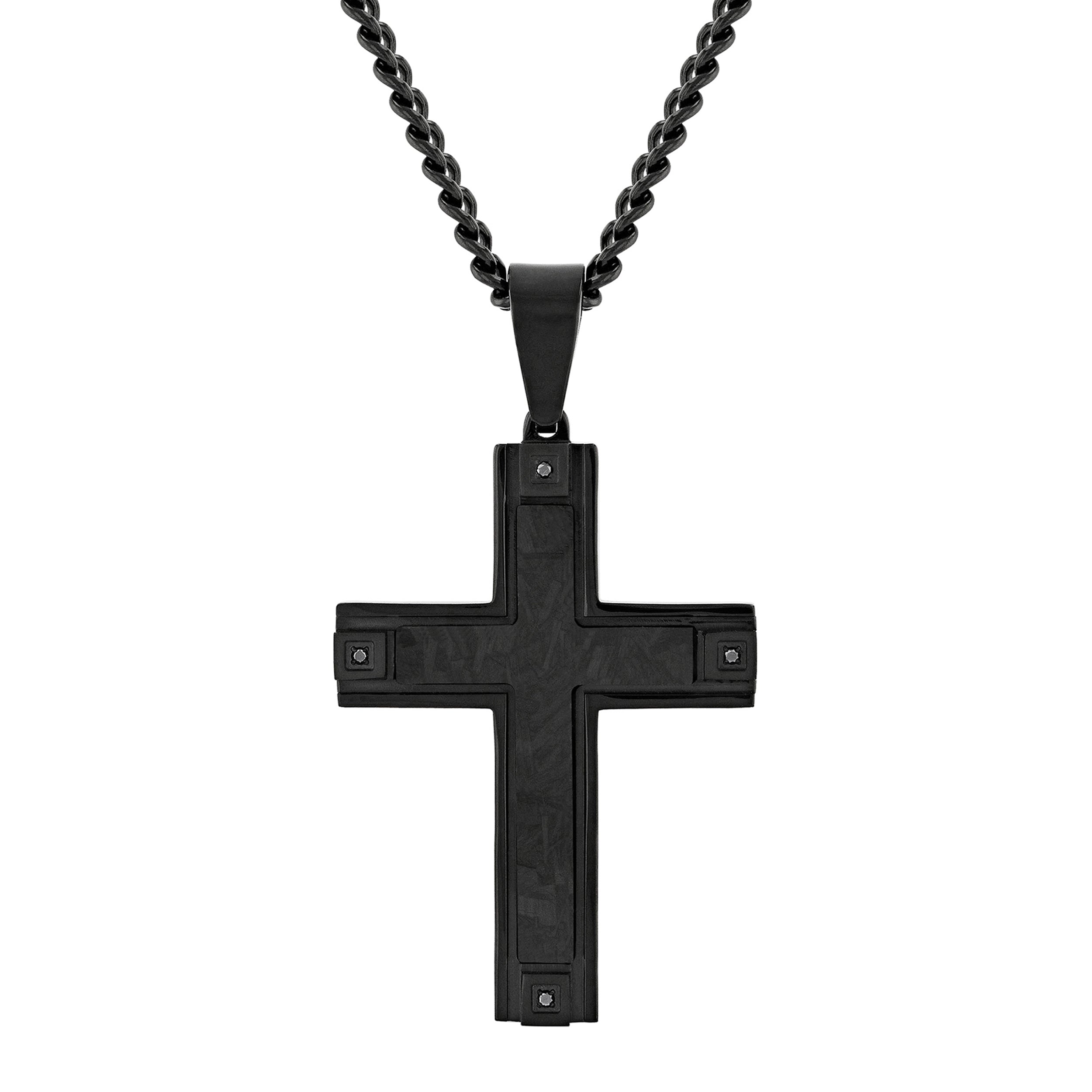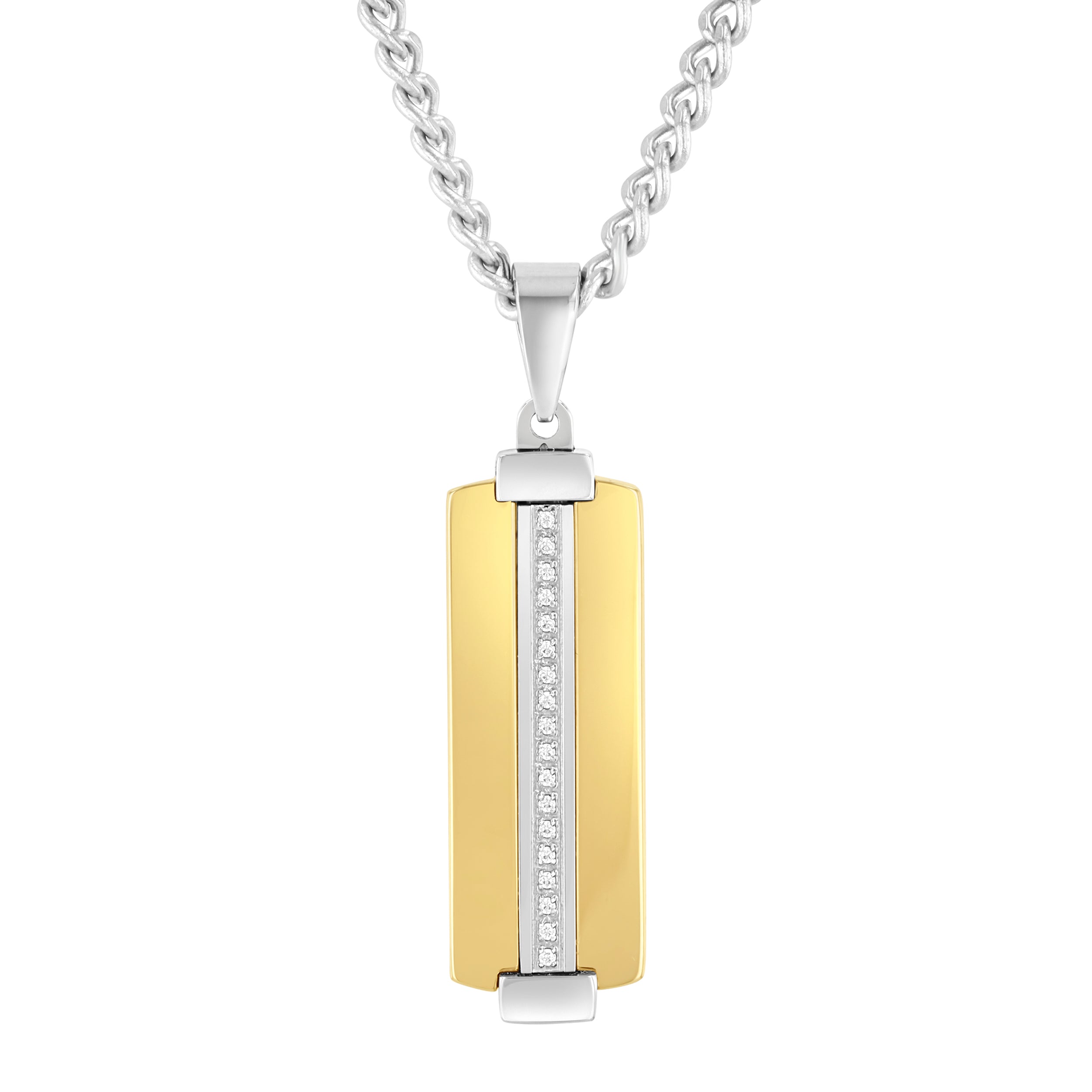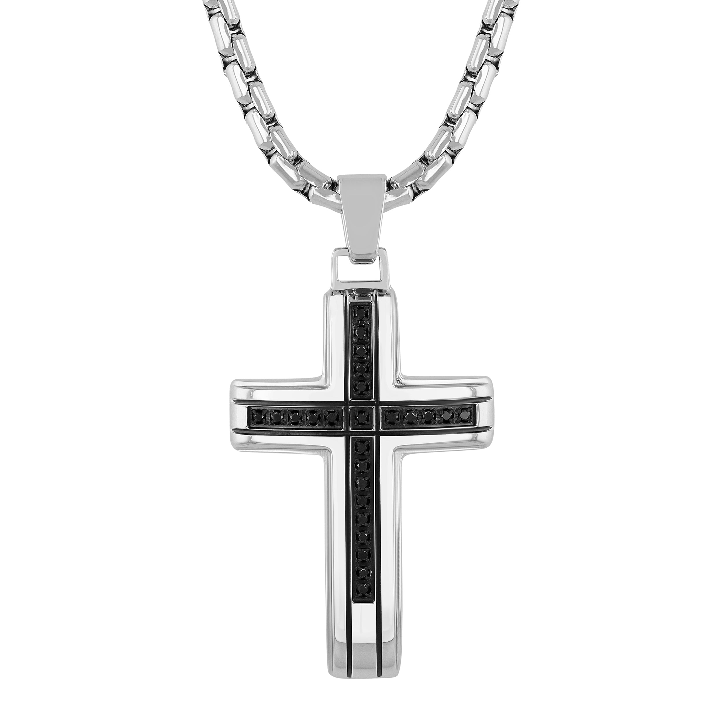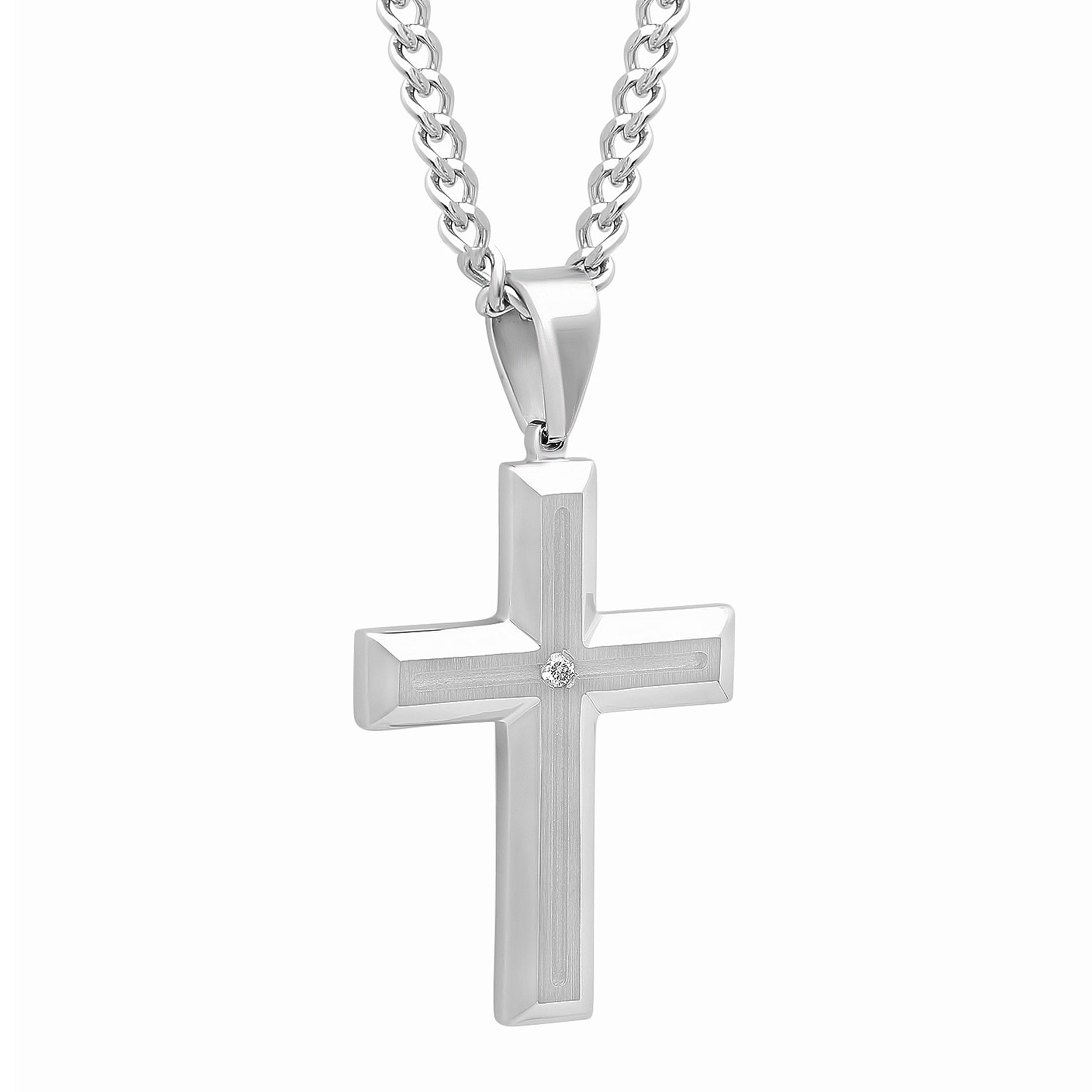 This cross pendant features genuine diamonds prong-set along a polished center line. The brushed steel frame adds structure and contrast, giving the design an architectural edge. Made from durable stainless steel, it’s a sharp, everyday piece built to balance shine and strength.