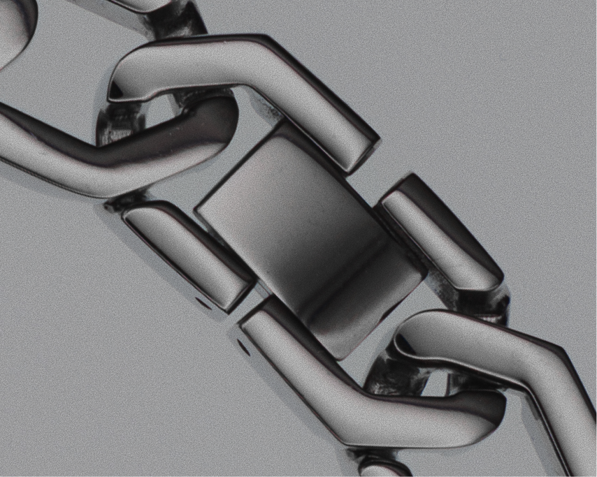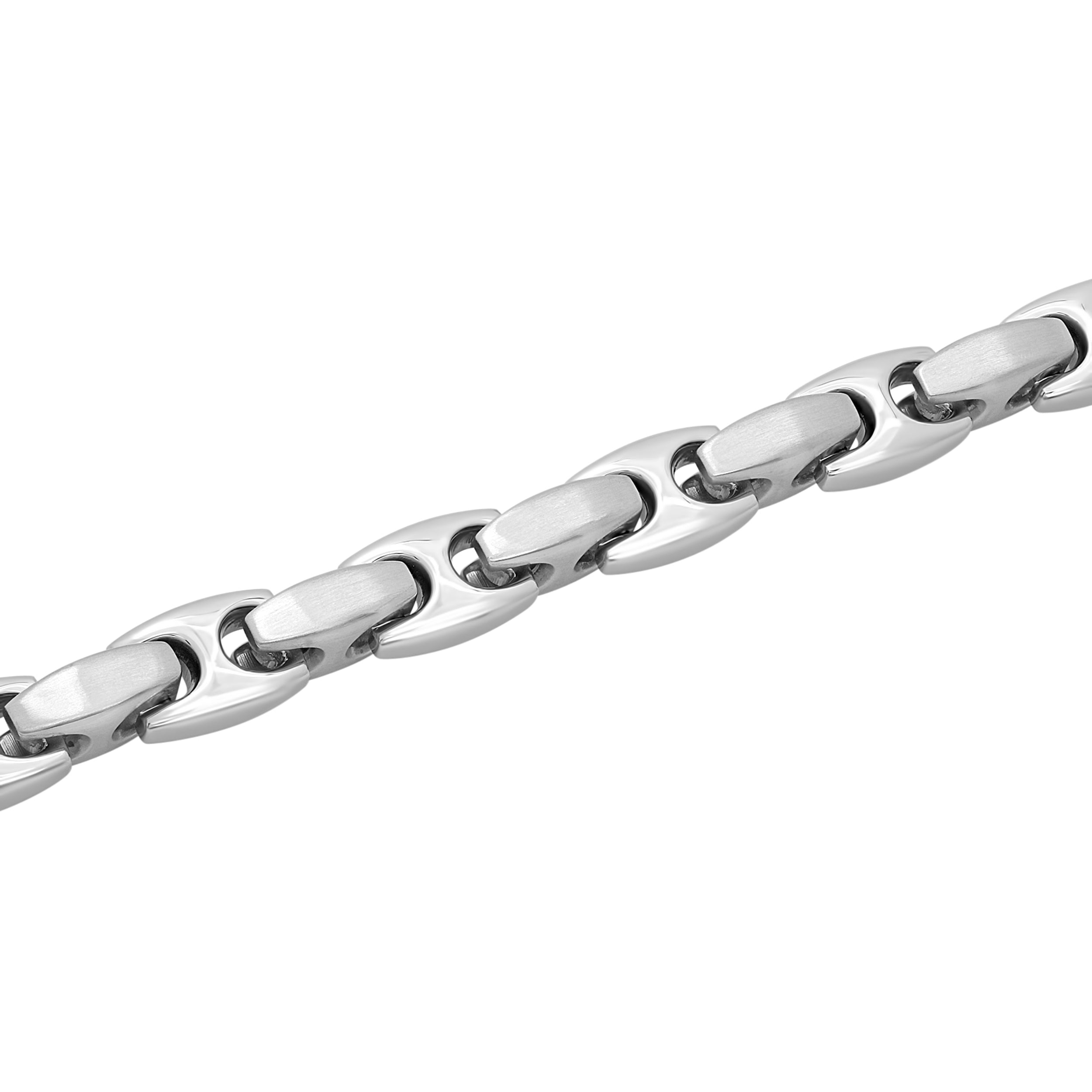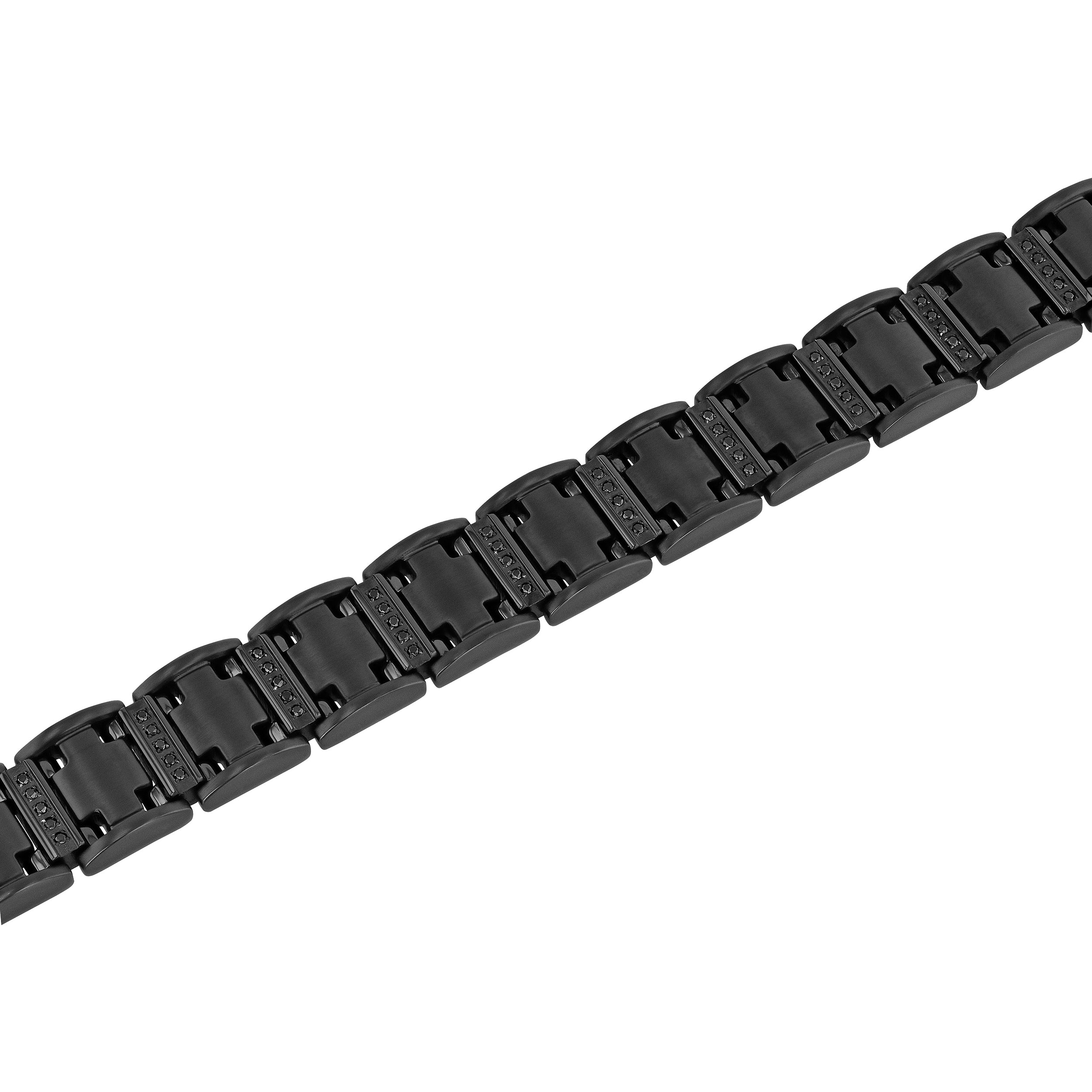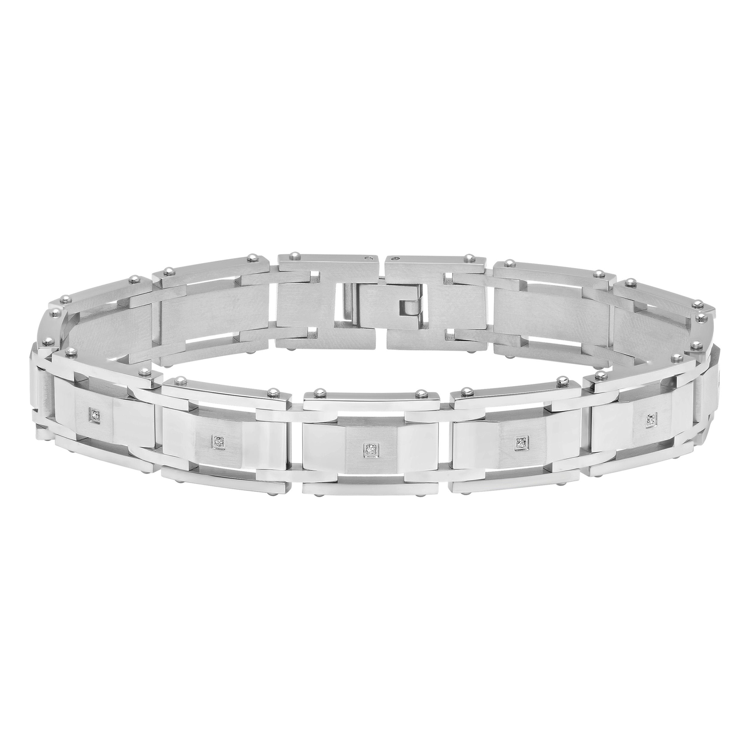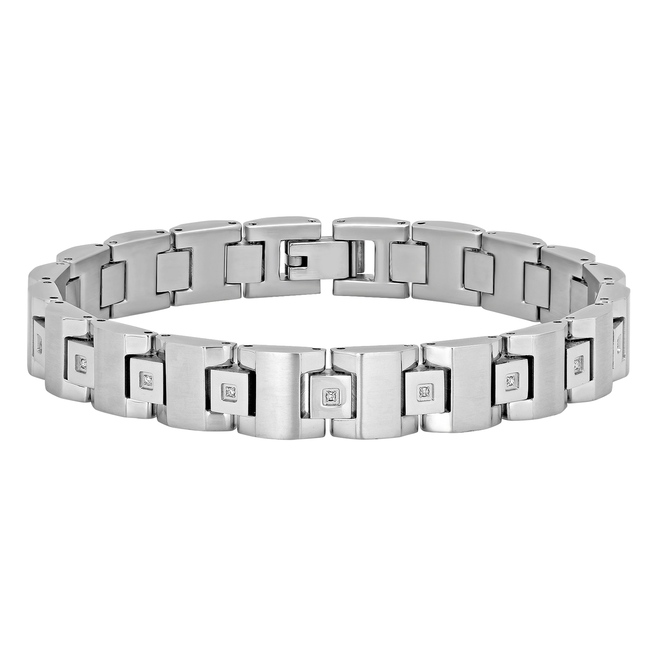 A durable men’s bracelet with a clean, geometric link design and carbon fiber inlays. Crafted from 100% stainless steel and set with .07 carat total weight of round-cut diamonds for subtle shine. Available with blue or yellow accents for a sporty, engineered feel.