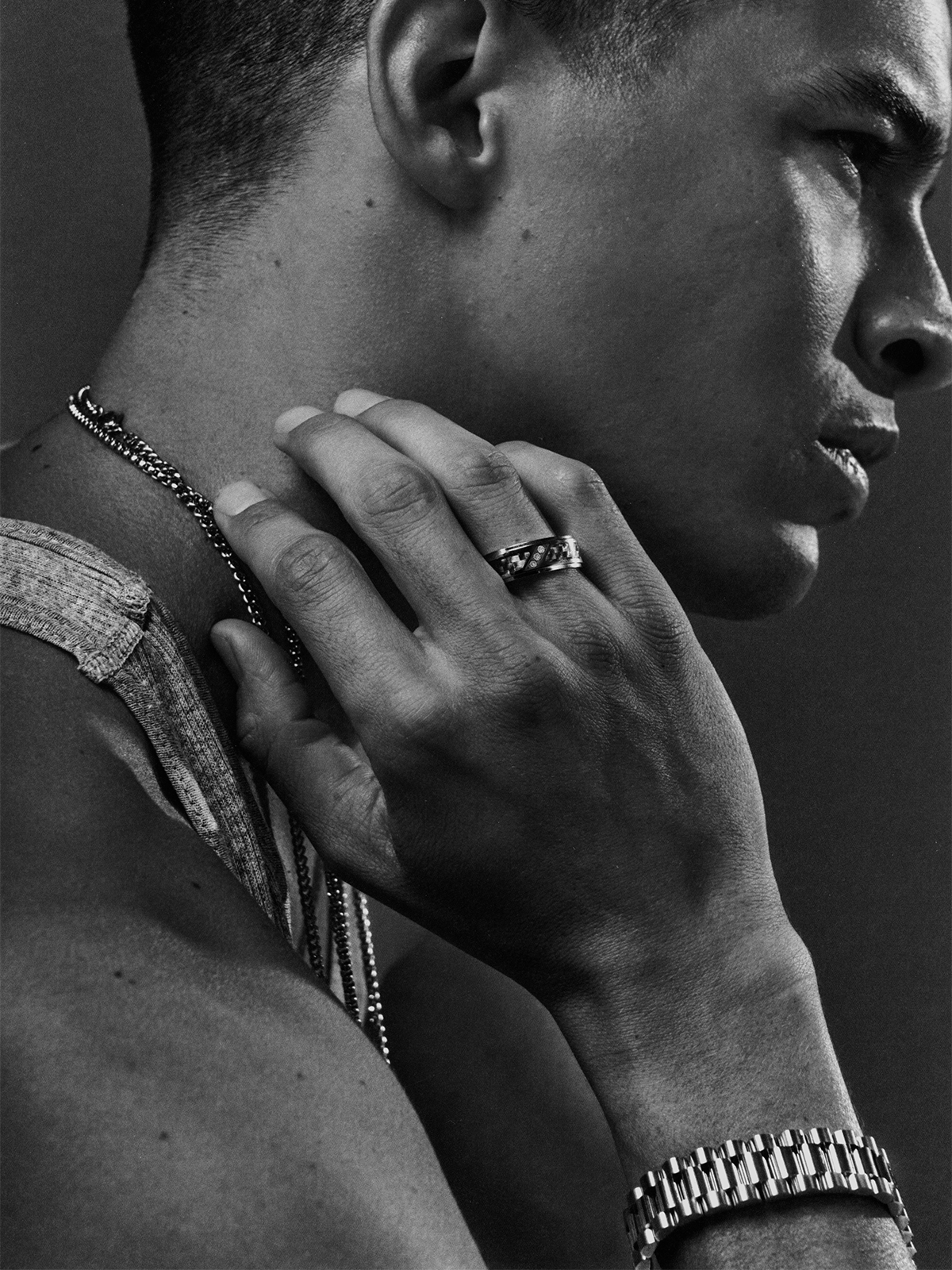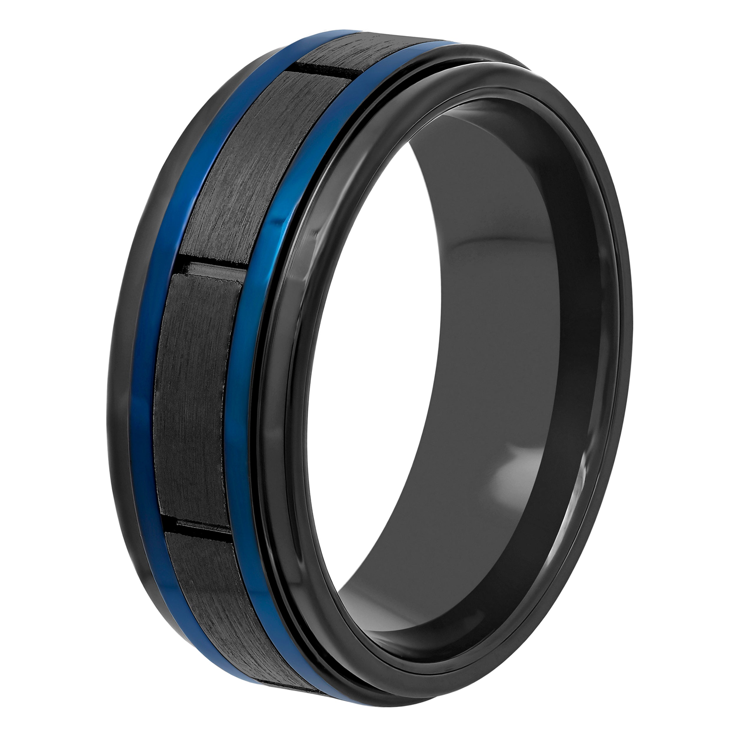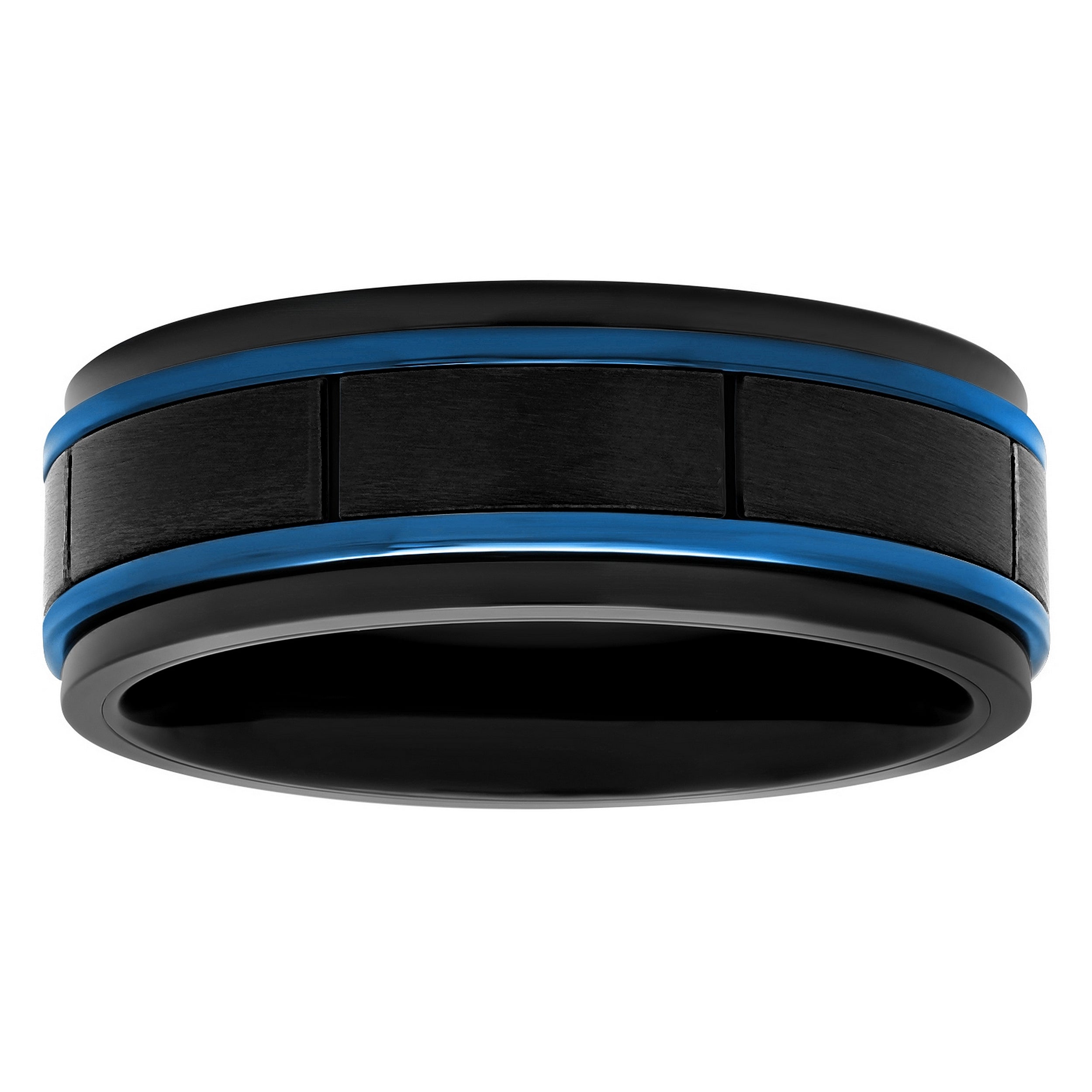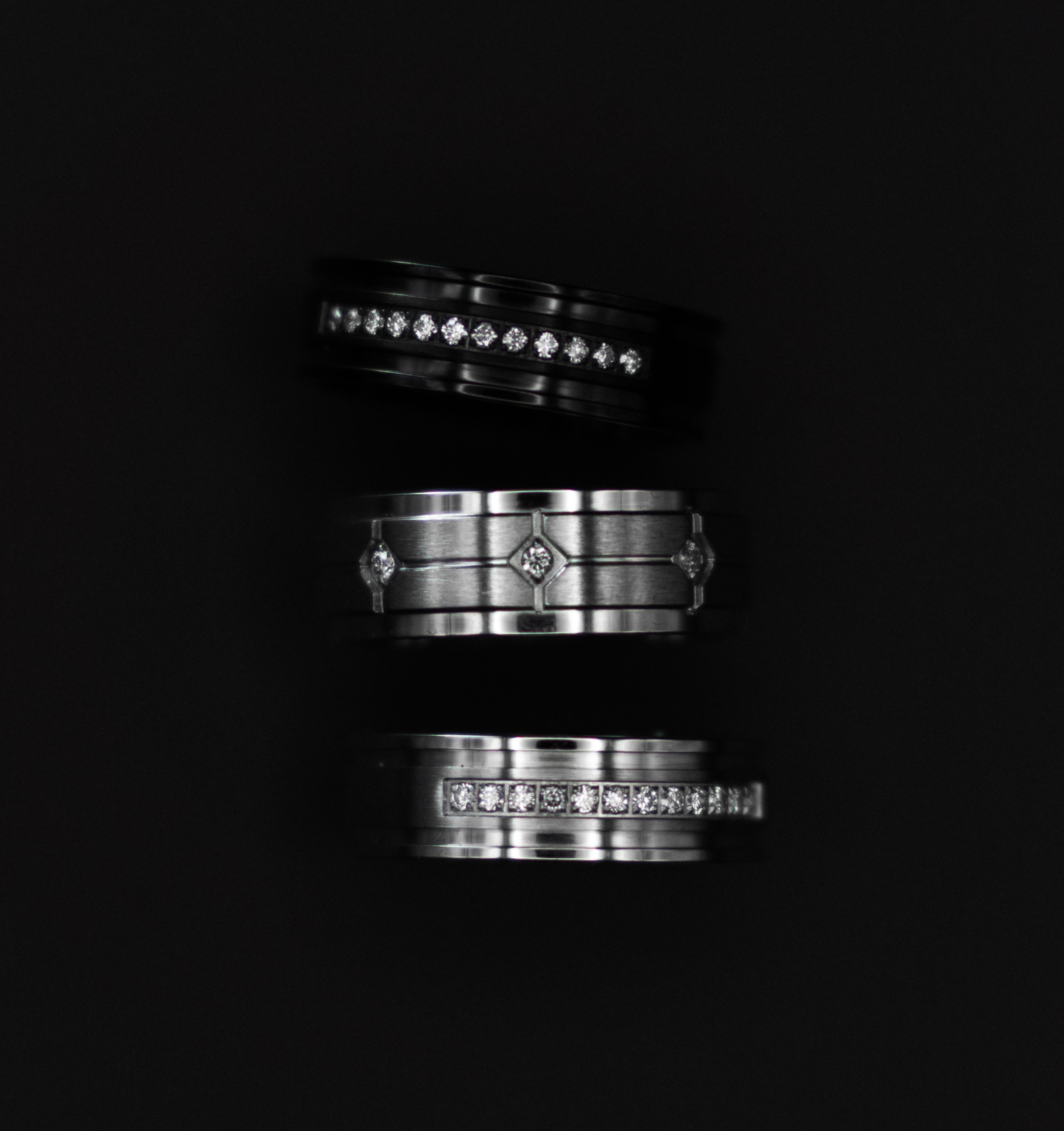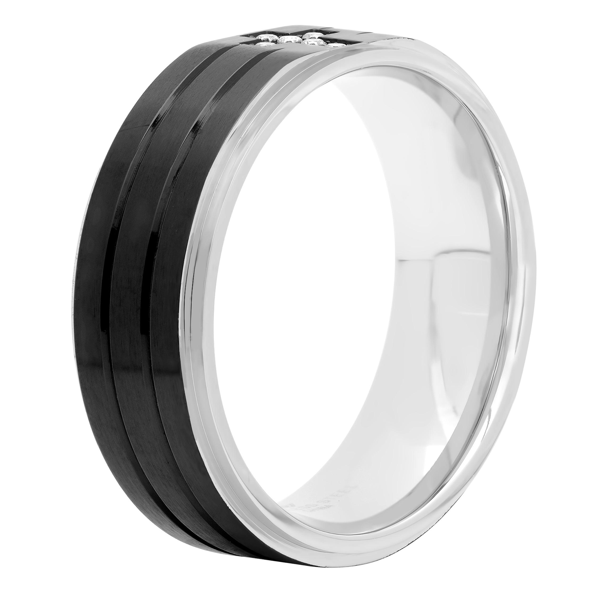 A polished men’s stainless steel band featuring a sleek step-edge design accented with diamond details. Its smooth interior provides all-day comfort, while the modern profile makes it perfect for everyday wear or special occasions.